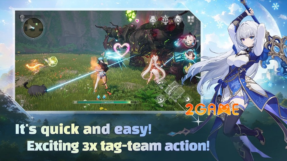 Hành trình trong game Mongil: Star Dive Mobile sẽ đưa người chơi dấn thân vào một thế giới huyền ảo tràn ngập ma thuật, nơi con người chung sống cùng các tộc tiên, thú nhân và vô vàn sinh vật kỳ bí. Bạn sẽ đồng hành cùng bộ ba nhân vật chính đầy lôi cuốn là Cloud, Verna và đặc biệt là cô nàng mèo Nyanners dễ thương nhưng sở hữu năng lực tâm linh vô cùng mạnh mẽ. Chính khả năng độc đáo của Nyanners sẽ là chìa khóa giúp bạn thuần hóa những quái thú hoang dã, từ đó lấp đầy cuốn “Bách khoa toàn thư quái vật” (Monster Codex) và biến chúng thành những đồng minh đắc lực trong các trận chiến rực lửa.