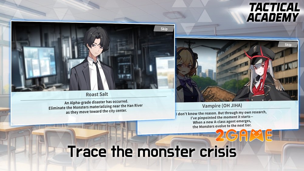 Để đối phó với thảm họa toàn cầu, một tổ chức đào tạo quân sự đặc biệt mang tên “Trường Chiến Thuật” (Tactical Academy) đã được chính phủ thành lập, nơi quy tụ những tài năng xuất chúng nhất để rèn luyện họ thành những chiến binh bảo vệ nền văn minh. Bước vào thế giới của game mobile Tactical Academy, bạn sẽ không chỉ là một người quan sát mà chính thức đảm nhận trọng trách của một vị Chỉ huy tối cao, người nắm giữ vận mệnh của các học viên và tương lai của cả nhân loại.